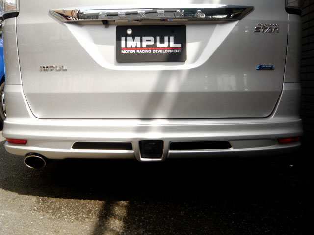 純正エンブレムの部分にピタッとおさまるセンターエンブレムです。インパルらしい硬質な造形がリアビューを引き締めます☆