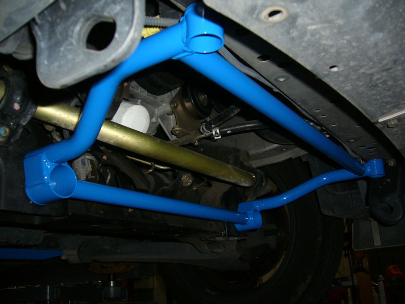 サスペンションメンバーとフレームの補強パーツです。インパル・パフォーマンスブレースに追加することにより、サスペンションとフレームの歪みによるパワーロスを抑え、ハンドルレスポンスの向上、走行安定性の向上が得られます。