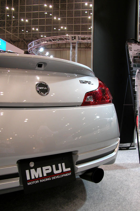 マフラー」からの変更点は、その名の通りテールの材質がチタンになっていることで、形状もオーバルから丸型の110mmに変更されています。チタン独特の風合いとこの形状が相まって、イメージはまさにGTカーそのものです。もちろんテールエンドにはIMPULのロゴが刻印されています。