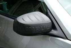 リアルカーボン製のドアミラーカバーです。表面の仕上げにこだわり、極めて滑らかで美しい艶を実現しました。カーボン繊維に浮き立つフィンとIMPULのロゴが高品位のスポーツテイストを生み出します。