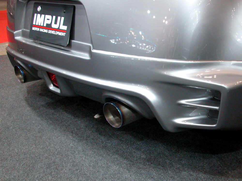 マフラー」のコンセプトを受け継ぎ、テールエンドをチタン製にし、よりレーシーに仕上げたマフラーです。チタン独特の色合いと形状で、イメージはまさにGTカーそのものです。もちろんテールエンドにはIMPULのロゴが刻印されています。