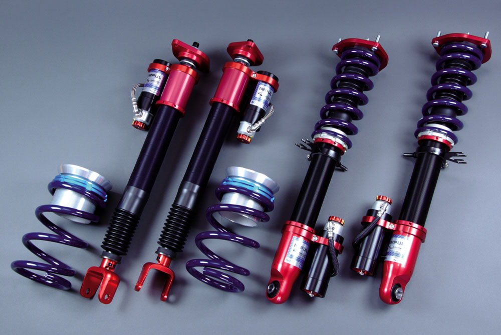 レーシングパーツそのままの高性能、高精度、高品質を確保するため、全てに100%レース専用パーツを使用しています。シリンダー部には硬質ジュラルミンを採用し、対摩耗性を得るために独自の硬質アルマイトでコーティングを施し、公道使用における十分な耐久性を確保しました。レースでも定評のプレロード調整機構(オイル通路のスプリングバルブにプレロードを掛ける方式)は、ダンパーの減衰圧力制御を安定させると共に、その精緻なメカニズムにより繊細なセットアップを確実なものにします。また、スーパーGTやフォーミュラニッポンのマシンと同じ専用オイルを使用していますので、高温時でも極めて安定した性能を発揮します。レース用ダンパーのパーツ100%で製品構成されていますので、オーバーホールや交換修理等のアフターサービスも万全です。