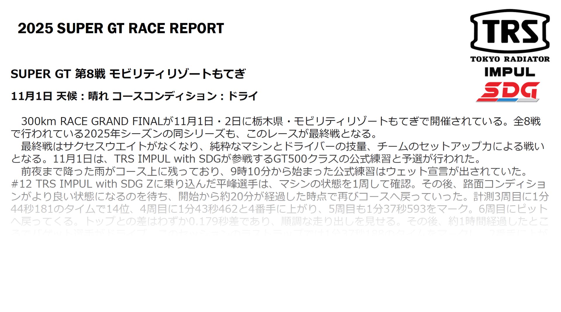 ■ SUPER GT Round8 MOBILITY RESORT MOTEGI