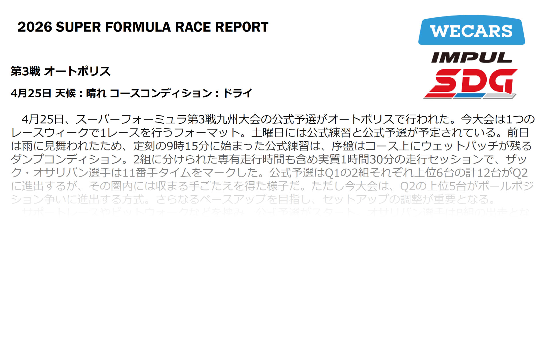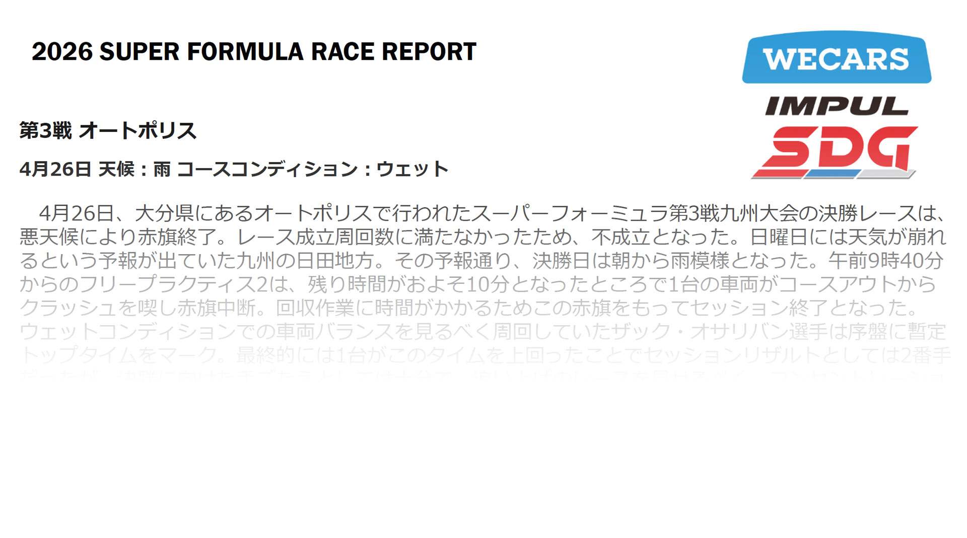 >SUPER FORMULA Round3 SUZUKA CIRCUIT